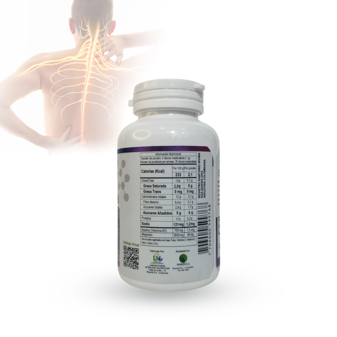 Para movilidad, equilibrio nervioso y vitalidad diaria. Fórmula en tabletas que apoya la función muscular, favorece la relajación y movilidad articular, contribuye a la salud ósea y colabora con la estabilidad del sistema nervioso. Además, respalda el metabolismo energético y el bienestar cardiovascular, siendo una opción práctica para promover equilibrio corporal y mejor rendimiento físico.