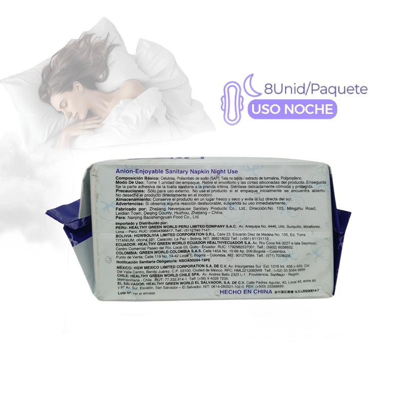 Ofrece protección nocturna confiable con diseño ultrafino, alta absorción y banda aniónica de turmalina para mayor comodidad y seguridad.